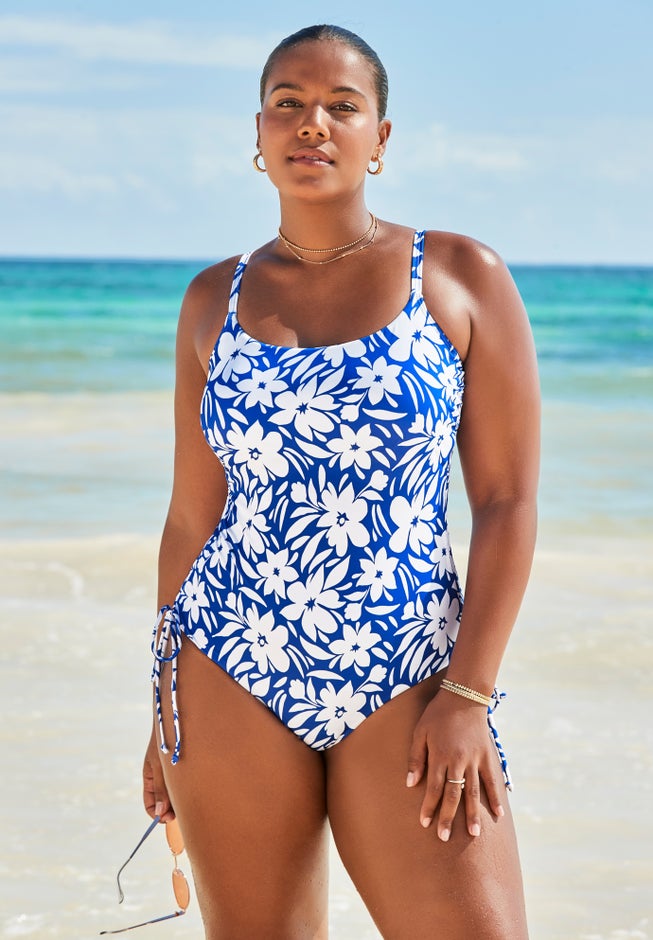 Item Number: 1114193A top-notch one piece designed to let you personalize your fit. Hidden soft-cup underwire provides secure bust shaping, complemented by removable cups for customizable support. Power Mesh lining smooths through the front body, while adjustable scrunch sides allow you to fine-tune your silhouette. Featuring a scoop-back neckline and adjustable back straps with a slidable J-hook. Finished with full seat coverage and a modern leg opening.
