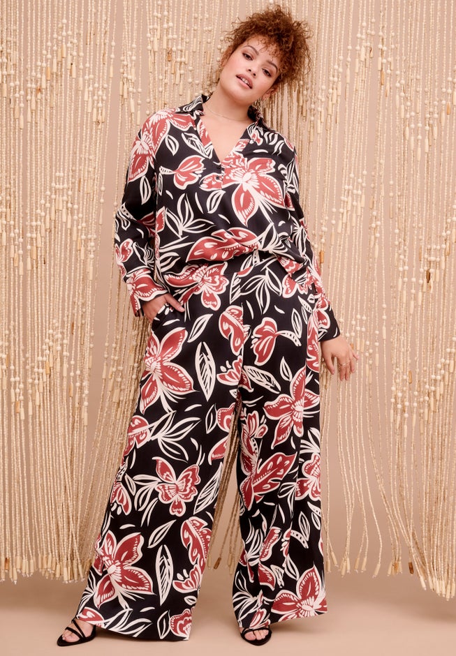 This slightly cropped blouse features a collared, button-front design and long sleeves with button cuffs for a polished look. This rayon twill top offers a modern, chic silhouette, perfect for office hours and beyond.
