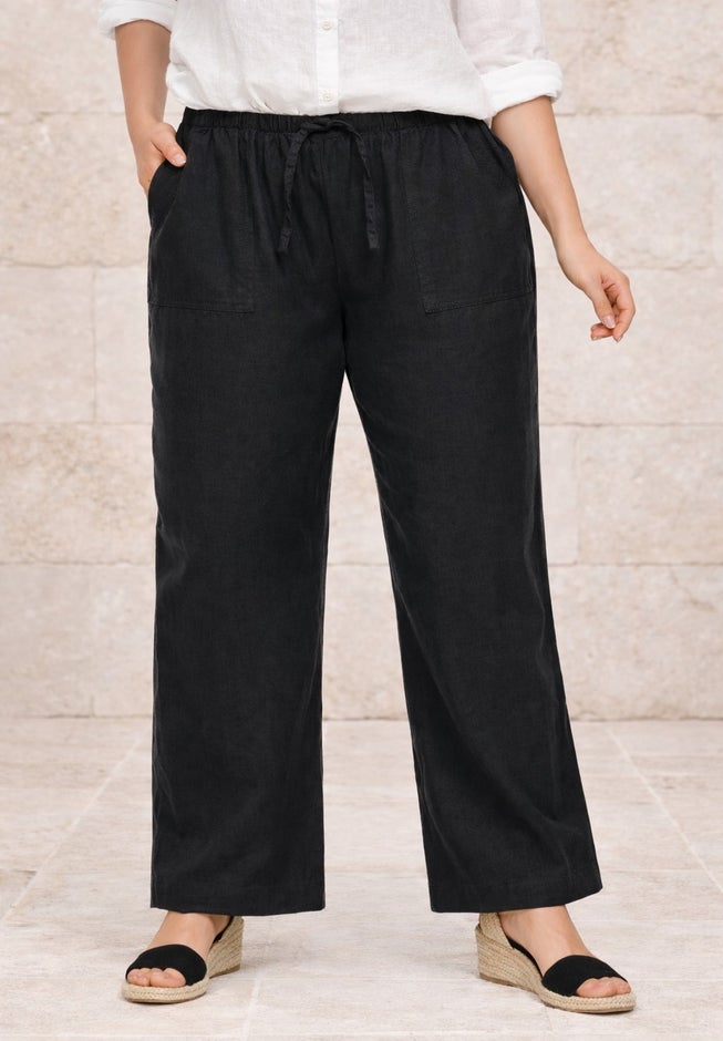 Made from our lightweight linen-blend fabric these pants are so easy to care for you'll never want to pack any other pants for your vacation. The elastic waist and drawstring ensure a comfortable and customizable fit. Pair them casually with a tee and sneakers or dress them up with a blouse and espadrilles.