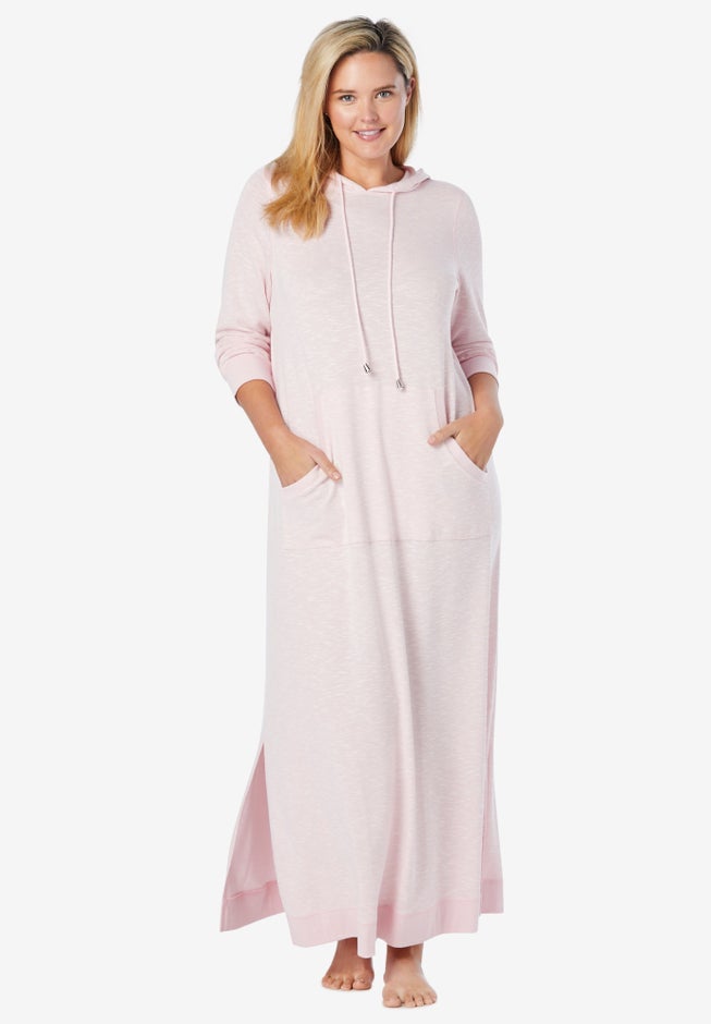 Get ready to lounge in this sleep essential made of a soft, marled baby French terry. An attached drawstring hood and kangaroo pocket feel just like your favorite hoodie. Contrast ribbed trim on the cuffs, pocket and hem.