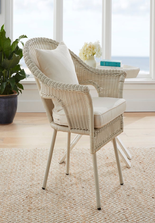 Roma Hand-Woven Resin Wicker Stacking Chair with Toss Pillow & Seat Cushion