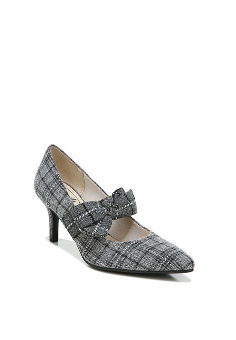 Make the world your runway in a statement-making pump with the prettiest stretch bow detail and 24/7 comfort. Fabric or microsuede upper with a softly pointed toe, slip-on fit, and Mary Jane-inspired stretch bow detail. Toe box, heel counter, and insole binding crafted with recycled materials. Soft System® comfort package provides all-day support, flex, and cushioning. Traction sole provides you with extra stability. Just Right Height 2 3/4 inch heel.