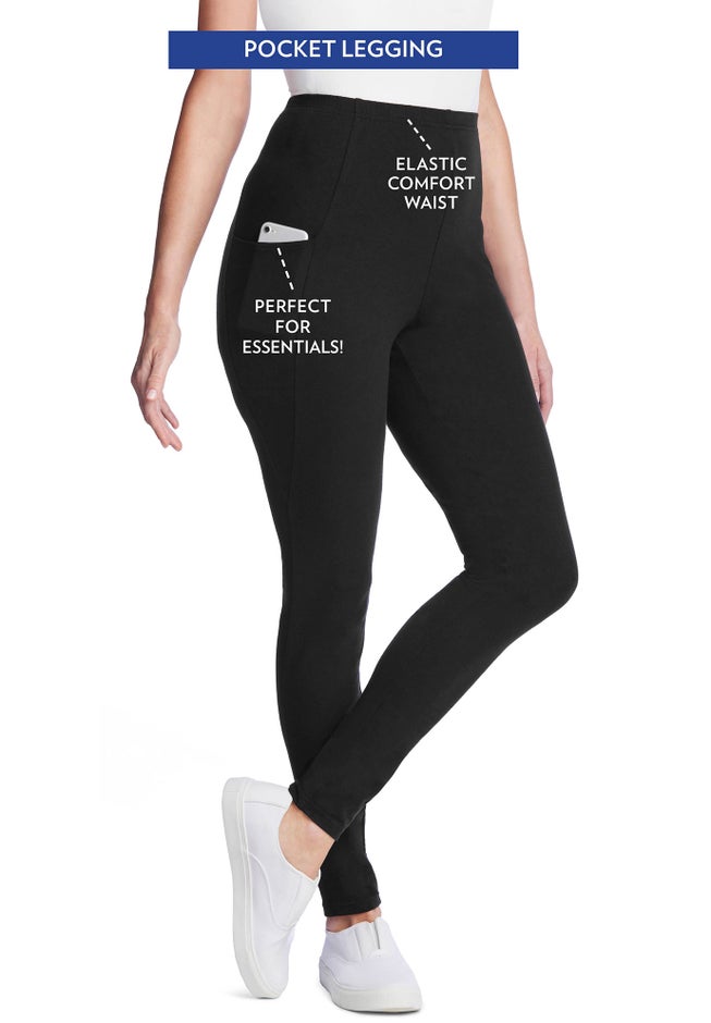 Designed to fit right and feel even better, these Side Pocket Pull-On Leggings are the pair you’ll keep reaching for—and reordering. Made from soft, cotton spandex stretch fabric, they move with you without losing shape, while the full elastic waistband offers a smooth, secure, no-dig fit that stays in place all day. Side pockets add everyday convenience, and with Average, Petite, and Tall inseams, you get a just-right fit from the start—no adjustments needed.