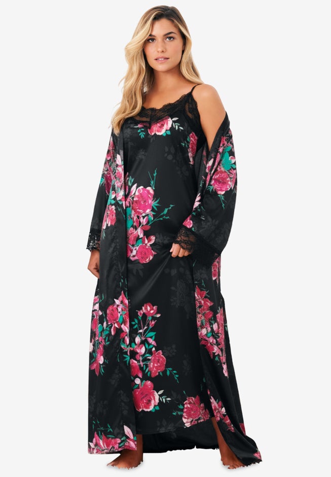 • Feel luxurious in this beautiful satin nightgown and dressing robe set, perfect for a touch of romance and comfort.