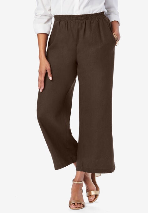 An easy pull-on style with an exaggerated wide leg and a cool, cropped length. Wide elastic waistband for all-day comfort. Side slash pockets.