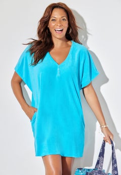 Go beyond the beach with our trendy tunics! Available in sizes 6-40, these beachy toppers can be worn anywhere and everywhere the sun takes you. From the beach to the boardwalk, just throw on one of our cover up tunics and you’re all set for a long, fun-filled day in the sun. Besides being versatile, this resort wear is one of our best-selling cover up silhouettes because of how comfortable it is. Trust us, once you put on one of our tunics, you won’t want to take it off. And we have so many different tunic styles to choose from, so there’s a look here for every woman. Prefer a tunic with a sporty feel? Give one of our zip front hoodies a try. Rather have a tunic that’s sheer and lightweight for summer’s hottest days? Our high low tunics are perfect for you. Want a sleek tunic that you can wear out to happy hour? There’s no better option than one of our gorgeous all-black, cut-out tunics with openwork featured on both sleeves. You'll see our tunics can truly be worn all dressed up or as a totally casual look. The choice is up to you. Pick out your favorite swimsuit, grab one of our tunics and you have a complete outfit from day to night.